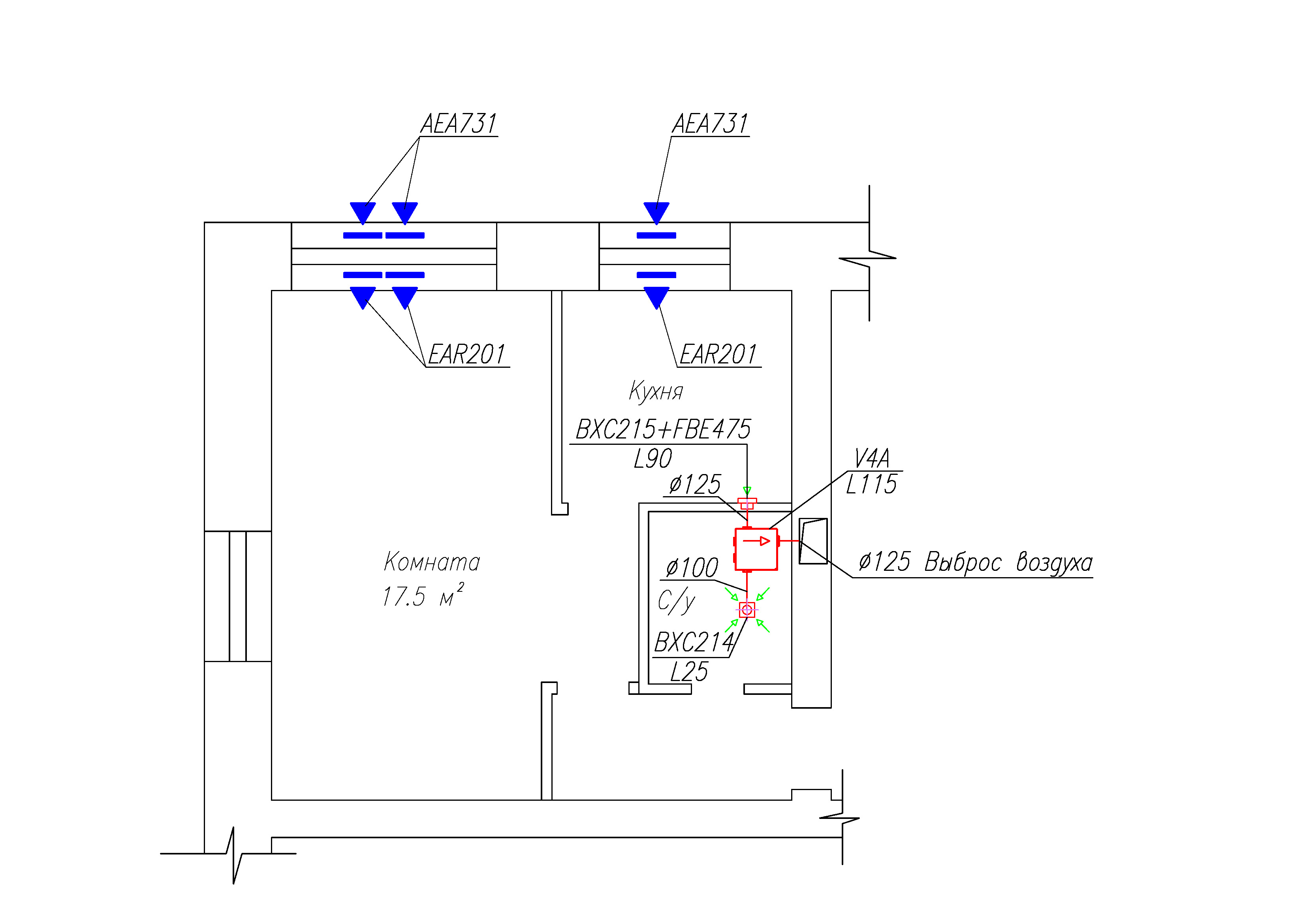 Во вложении стандартное решение - схема размещения оборудования Aereco. Спецификация оборудования: